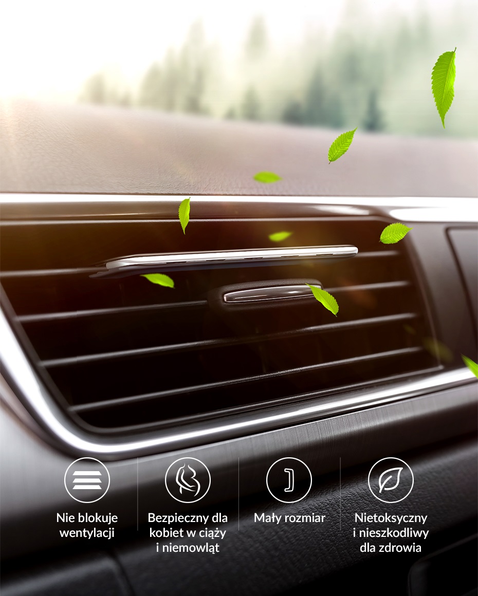 The unique Baseus air freshener not only has a nice fragrance but also looks great. It is safe for your health and due to the possibility of mounting it to the ventilation grid, it will not distract you while driving.