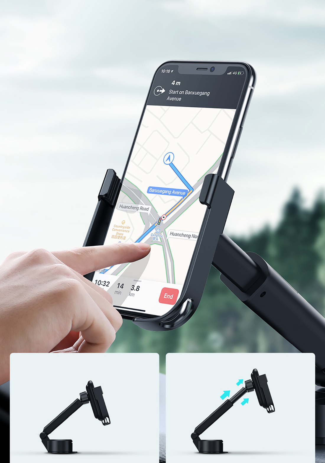 The special design allows to mount the handle in any ventilation hole. The additional telescopic arm is a great solution for mounting on the cockpit or glass. The inside of the bracket and clamps are made of protective silicone to protect the phone from scratches. The pressure arm is made of aluminum alloy and has the right pressure, even on the most bumpy roads. The equipment has passed many safety tests and obtained numerous certificates. It is made of durable materials and is designed for devices from 65 mm to 85 mm wide.