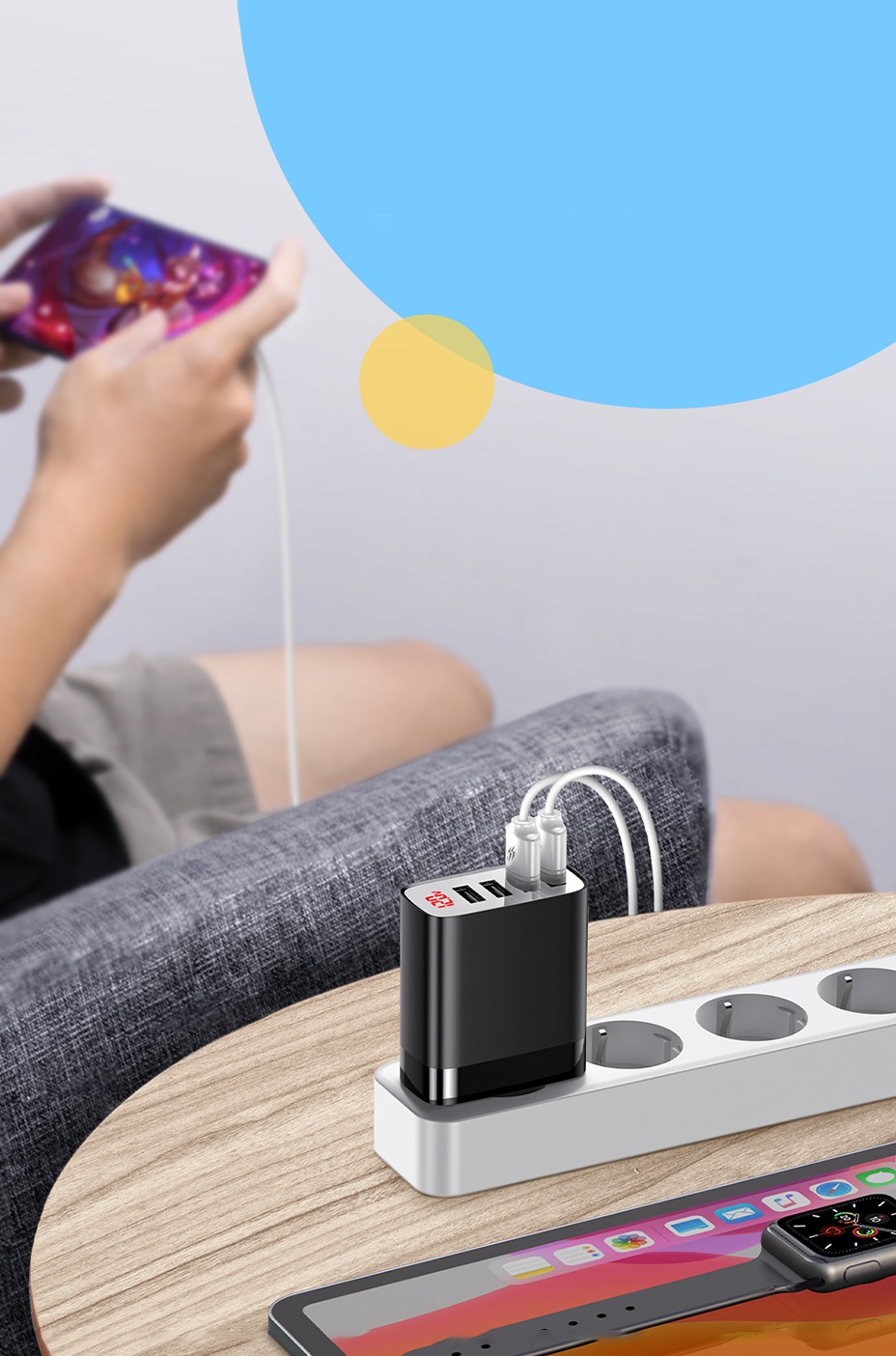The Baseus charger adjusts the charging power to the number of devices connected to it. This makes charging fast and safe and allows you to relax during this time.