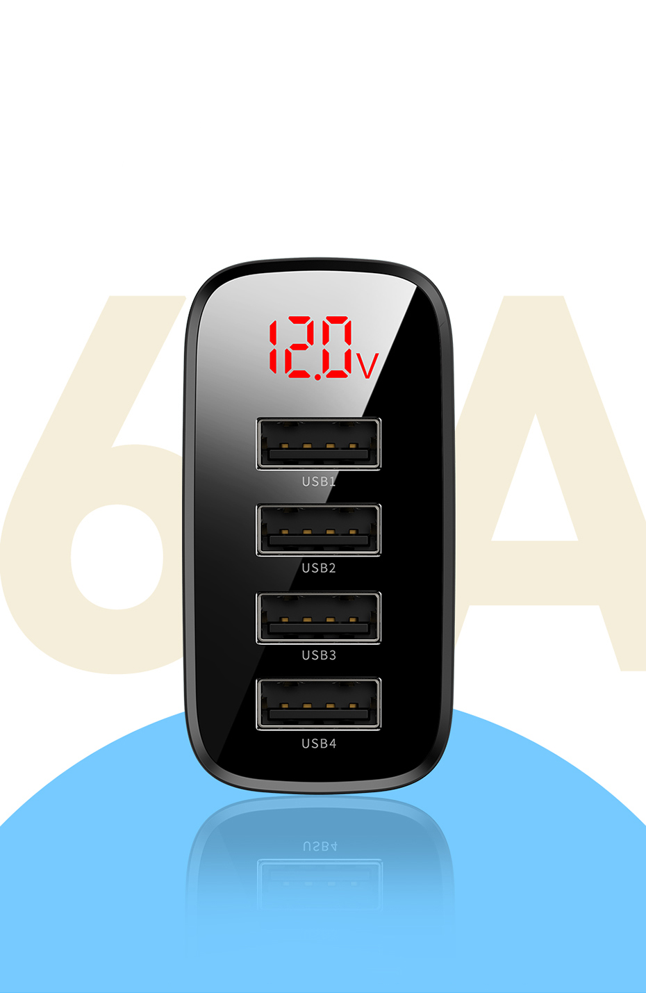 The charger allows for quick charging with 6A power. You don't have to wait long to charge your devices, even if you charge them all at once. The intelligent LED display shows the voltage and current values.