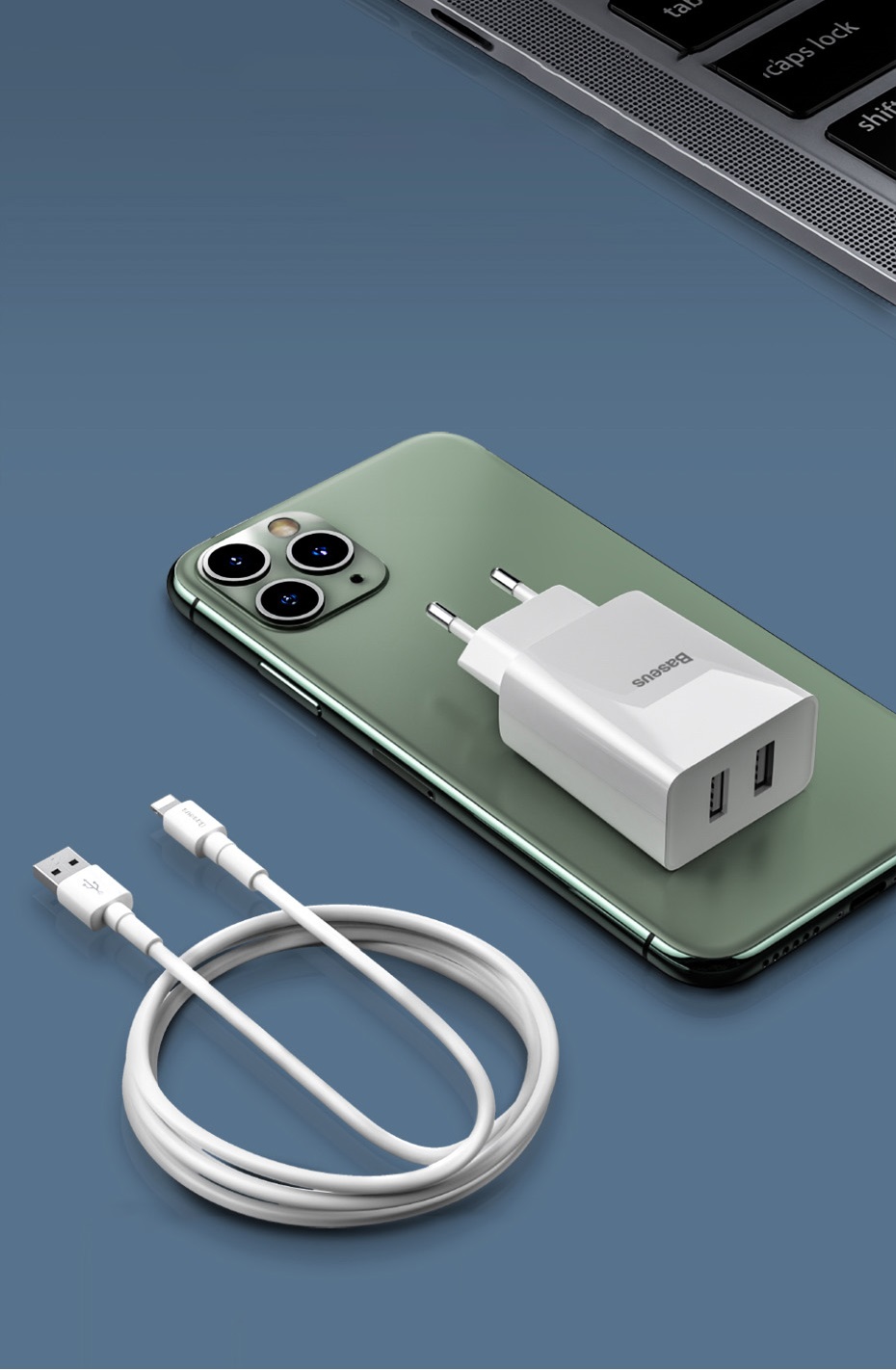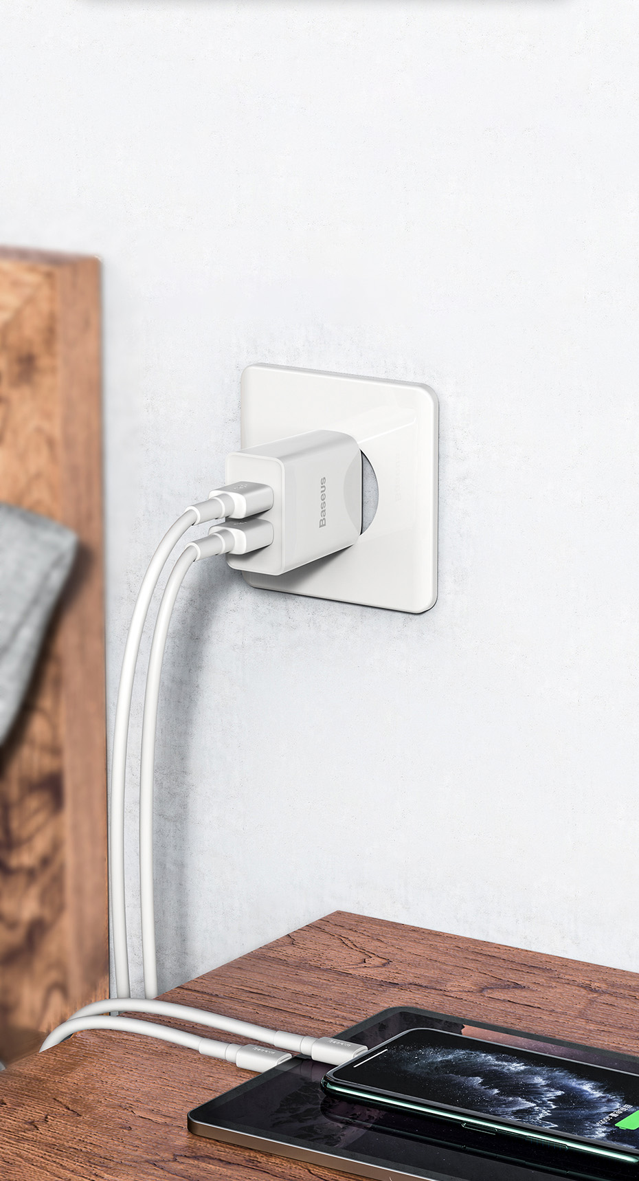 The Baseus charger has a dual USB port so you can charge two devices at the same time. You will never have to wait for the second device to recharge.