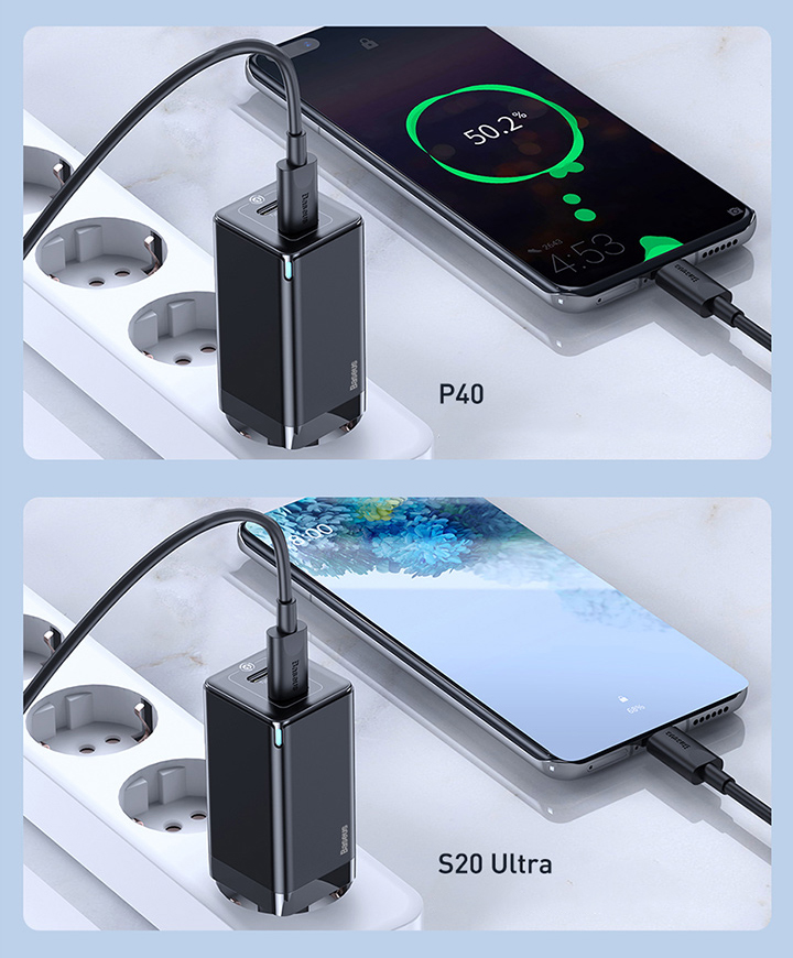 The updated BPS II (Baseus power Split II) technology enables simultaneous and fast loading using both ports.