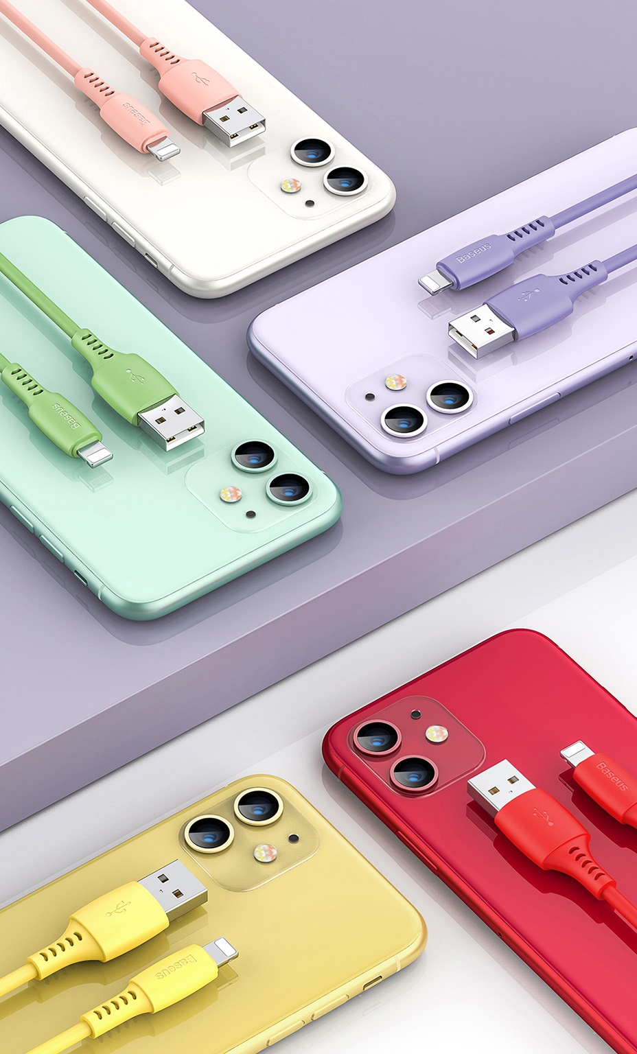 The colorful USB Lightning USB 2.0 cable allows a 2.4 A charge and data transfer rate of up to 480 Mbps. In addition, the 1 Gb of data transfer takes only 24 seconds! It is made of high-quality materials and is available in different colors.