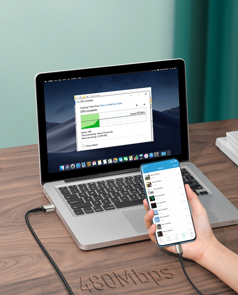 The cable provides up to 480Mbps transmission speed - 1GB file size transfer in only 25 seconds.