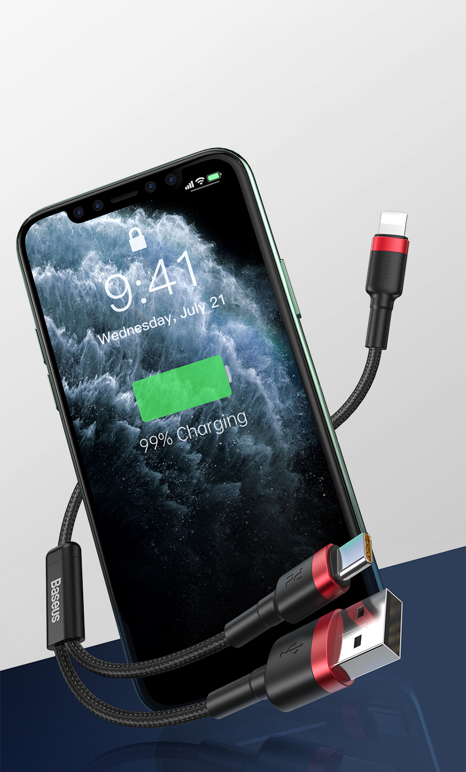The Baseus cable is made of extremely durable material, which is resistant to abrasion, breakage, and minor mechanical damage. Thanks to its compact size you can always have it with you.