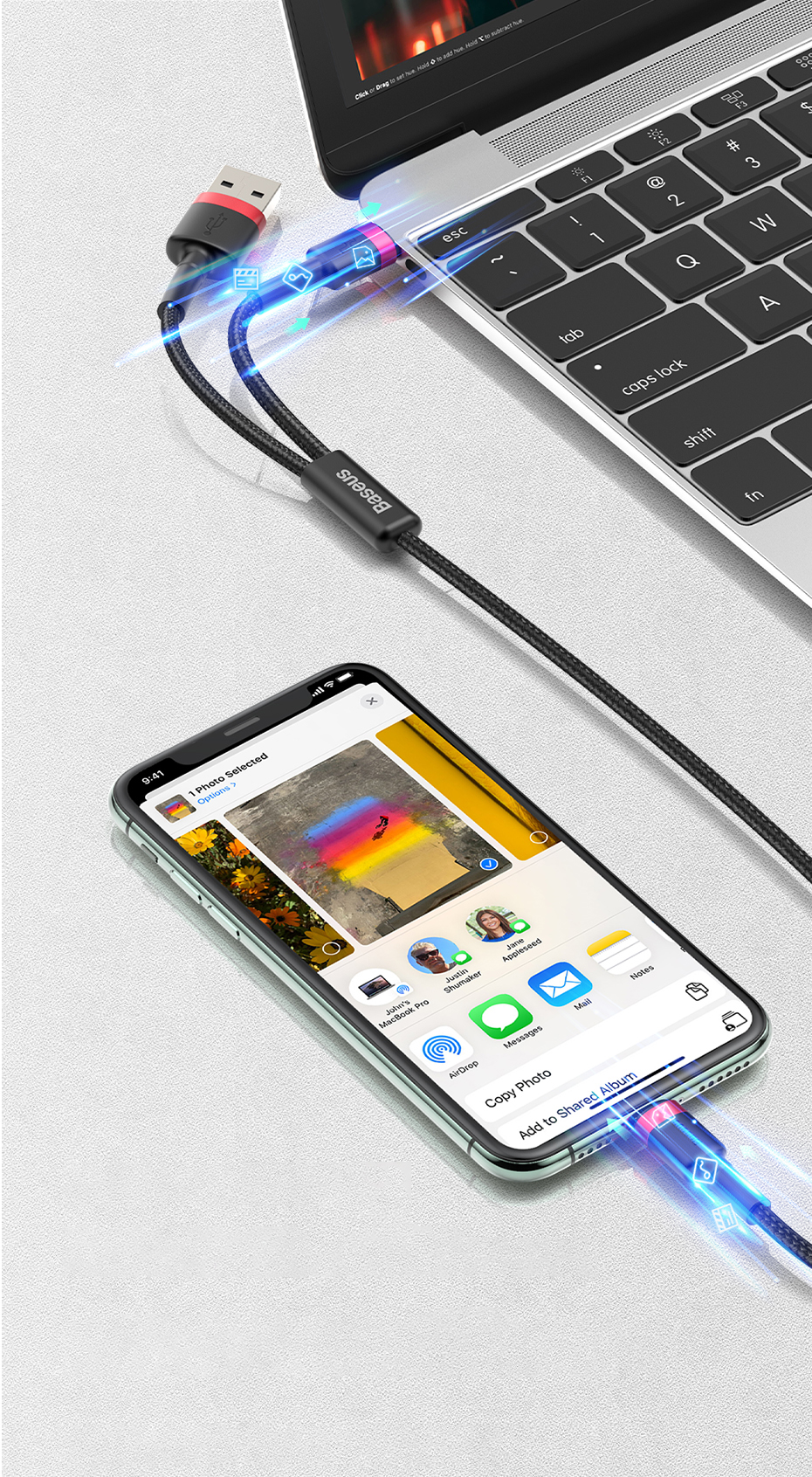 Baseus cable is a guarantee of fast data transmission and charging in QC 3.0 and Power Delivery technology. Made of high-quality materials, it is resistant to breakage and mechanical damage.