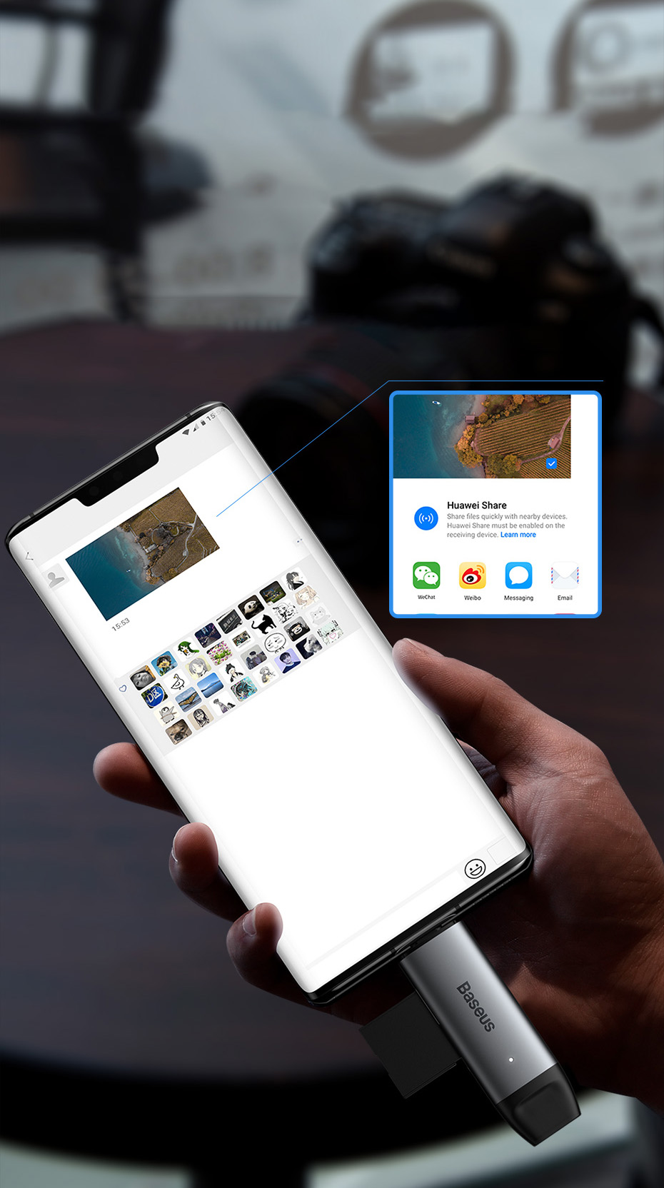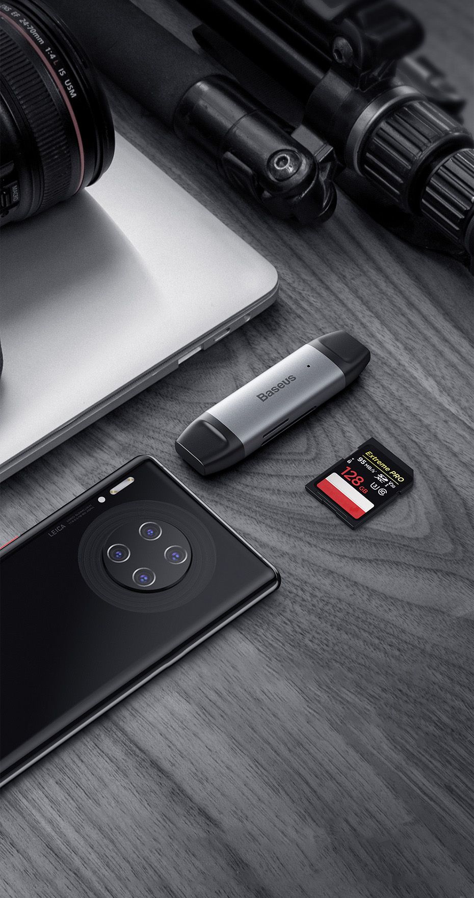 Baseus Lentil is a compact MicroSD and SD card reader. With this device, you can easily increase the memory in your laptop or smartphone. The reader provides a read/write speed up to 5 Gb/s (USB 3.0).