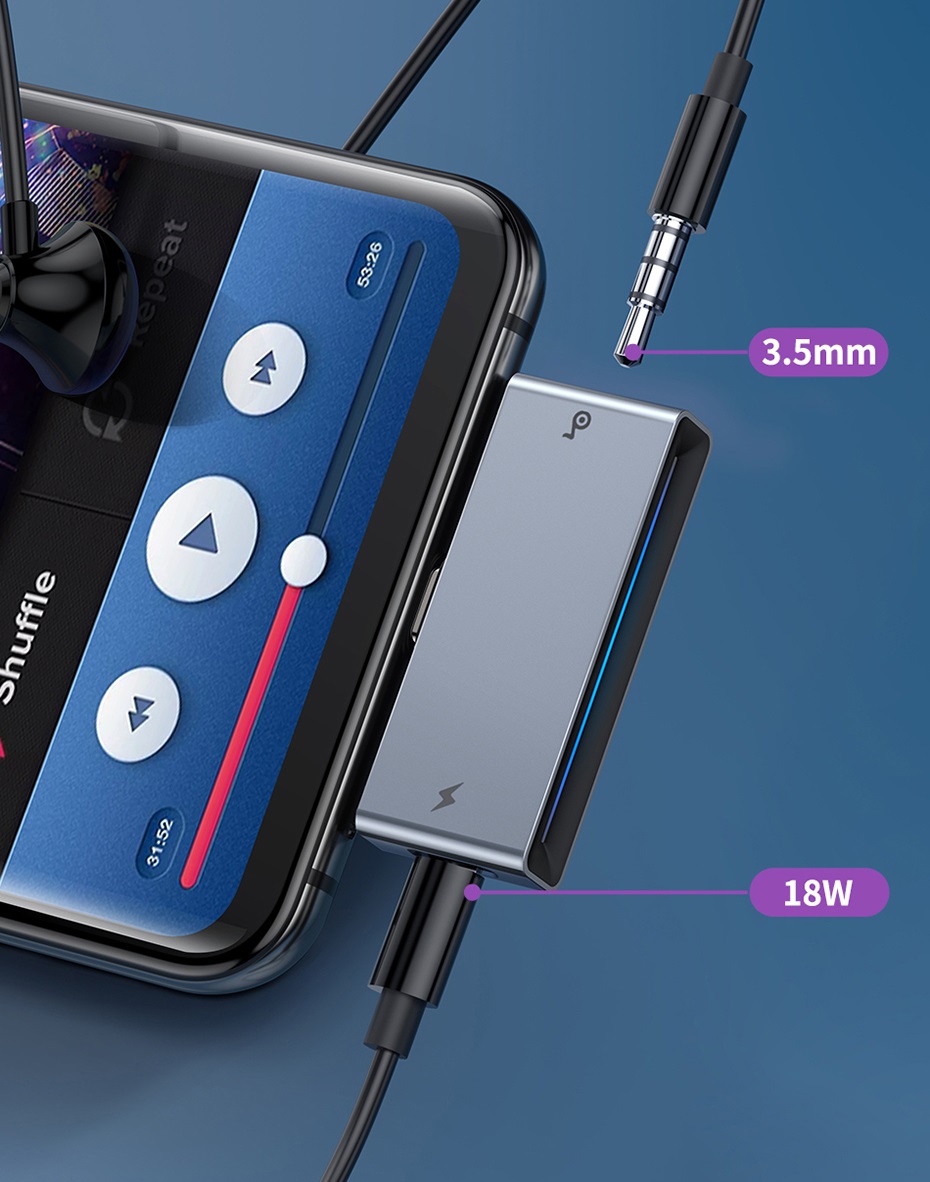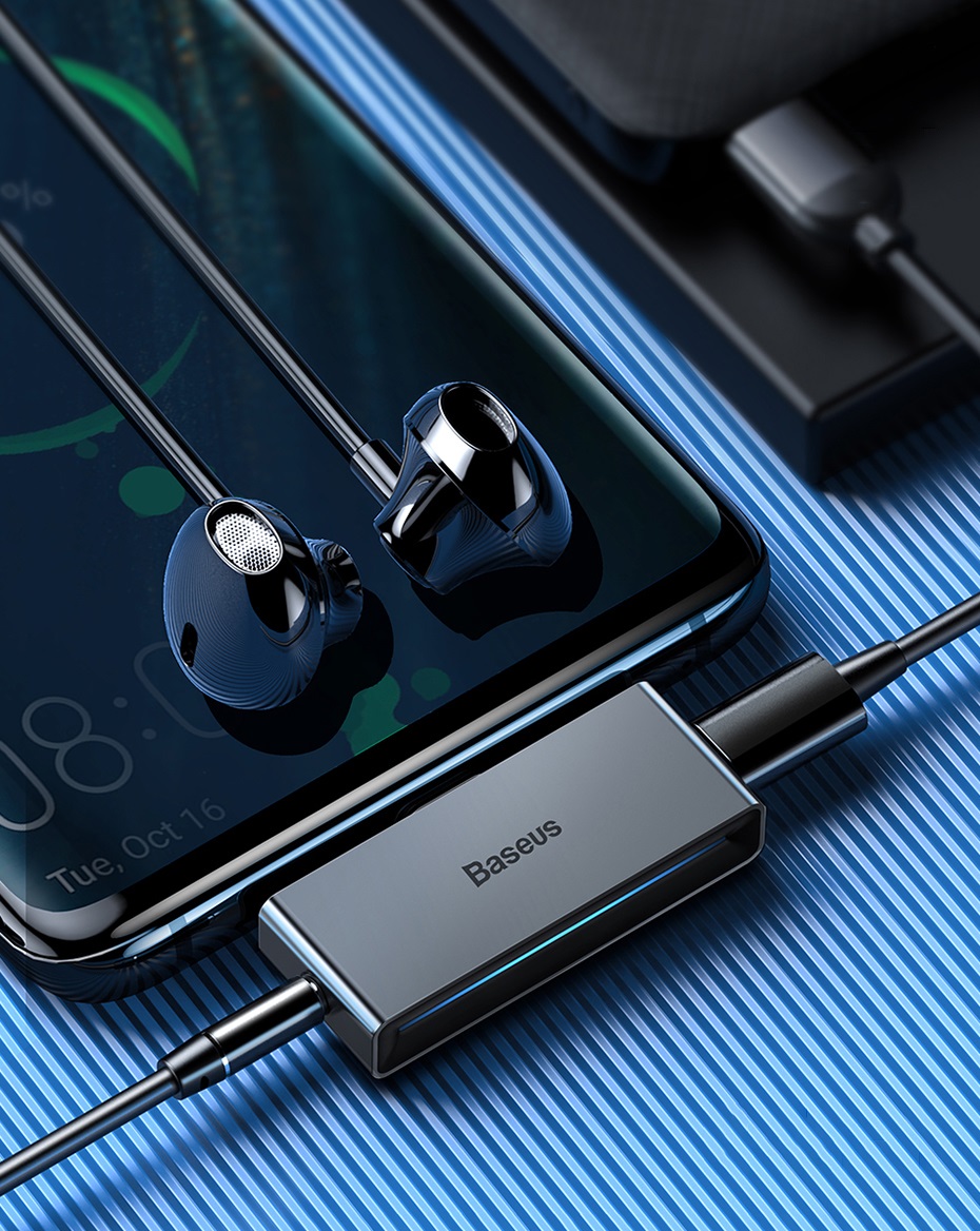 With the Baseus adapter you don't have to choose between charging your smartphone or listening to music. From now on you can do both at once.