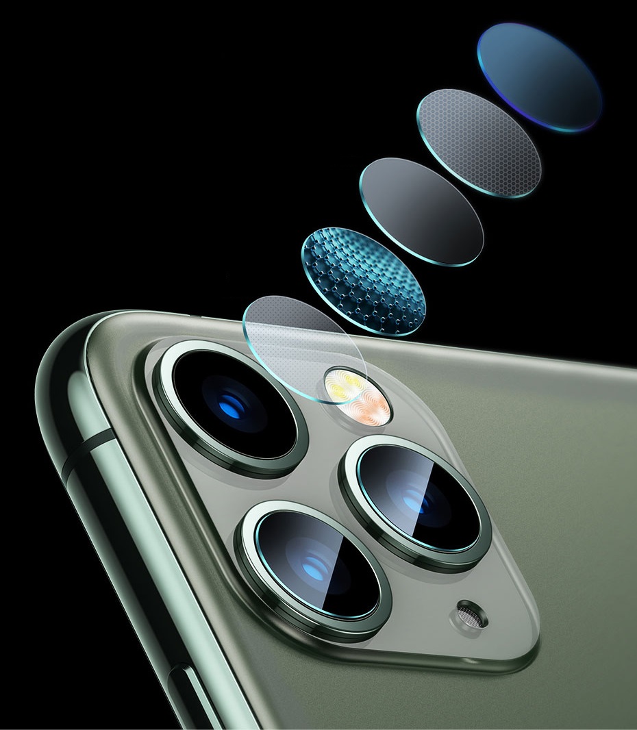 Ultra-thin 0.15 mm thick protective film for iPhone cameras 11. It doesn't affect the image quality in any way, it perfectly protects the cameras from scratches and breakage. It covers the entire camera, including the edges, precisely.