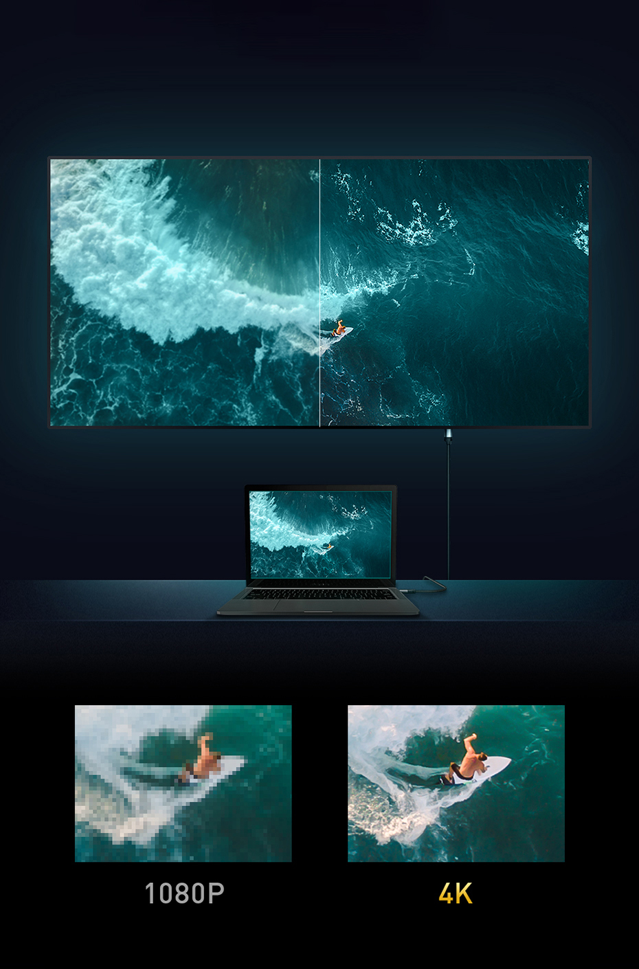 The cable allows you to take a screenshot from your laptop or other device and transfer the image to a larger screen. It provides the highest quality picture and sound. It is perfect not only at home but also at work, at a conference or school.