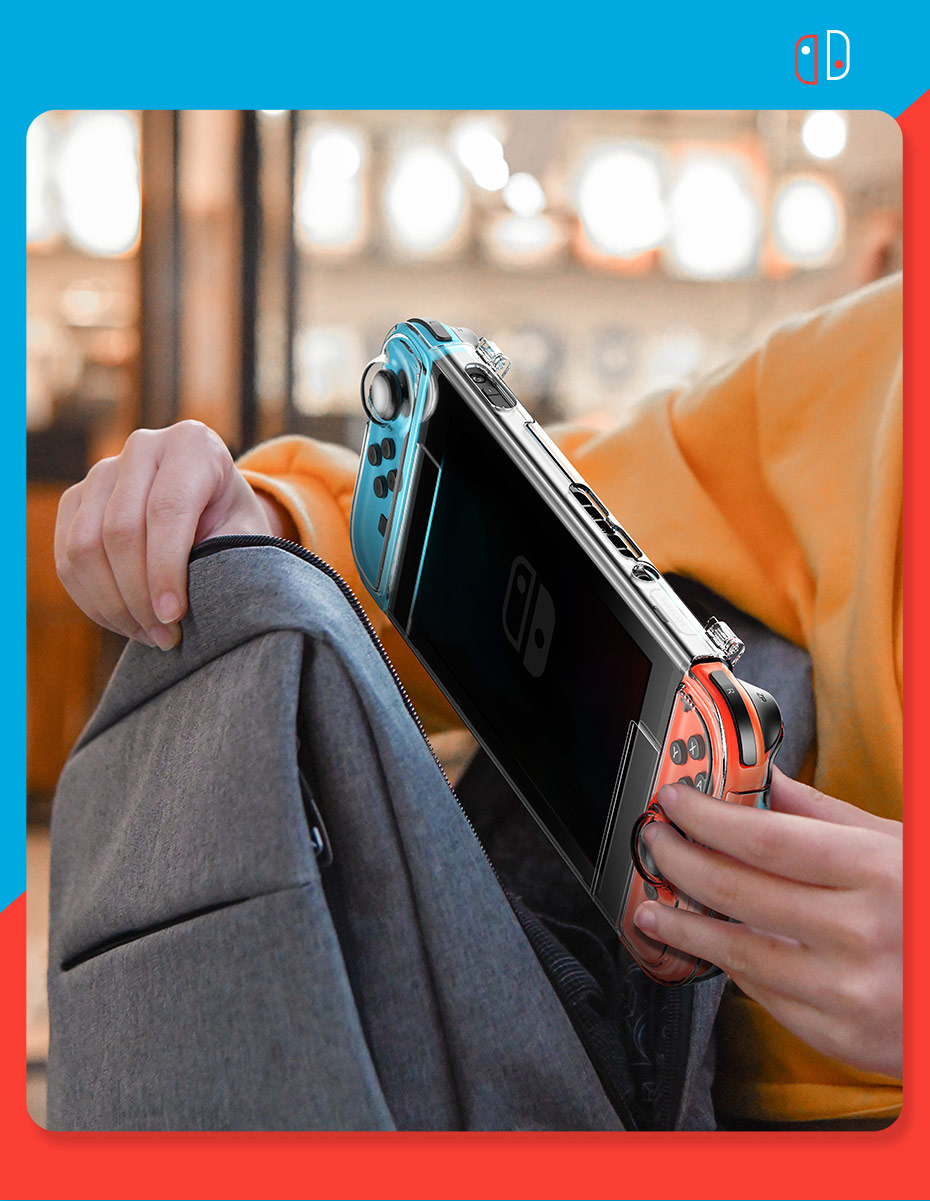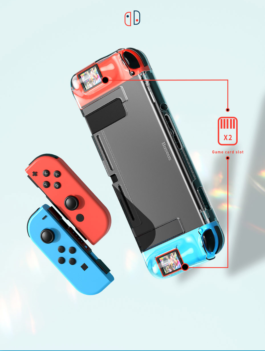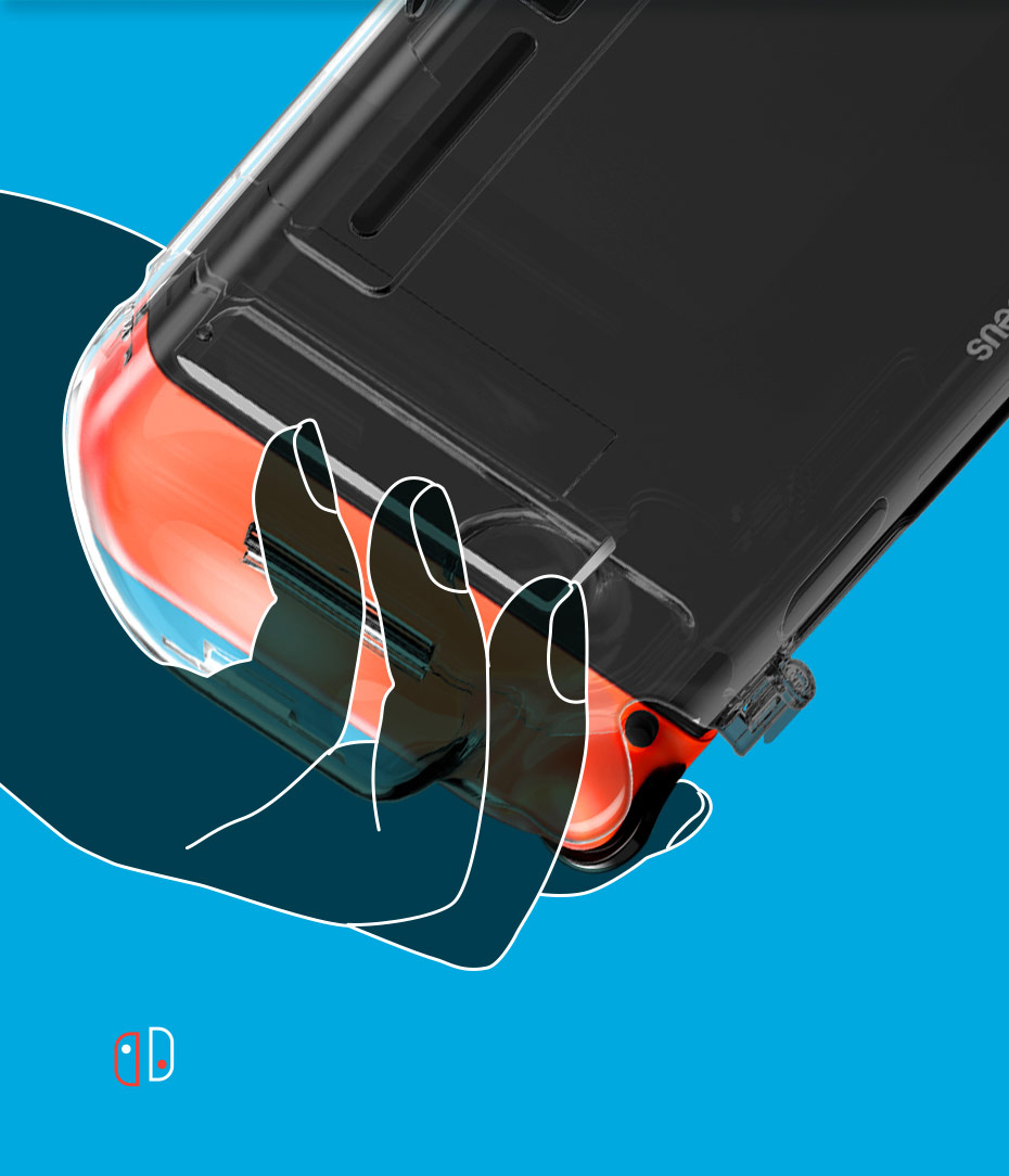 The slim design allows you to easily insert the device into the docking station and connect it to the TV. The casing has 2 additional spaces for cards and allows for their safe storage. Now you can easily pull out and reinsert JoyCon with one hand.