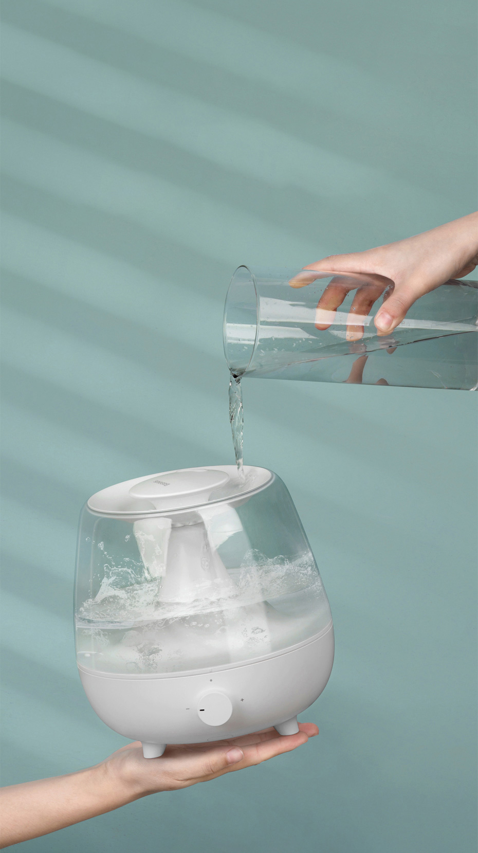 The Baseus air humidifier can be easily filled with water without removing the cover. The large volume of 2.4l means that you do not need to refill it frequently with water.