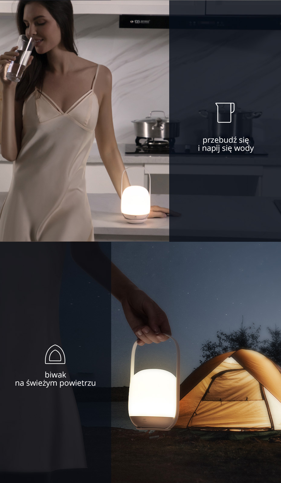 Two modes are available: portable lamp mode and table lamp mode. Let's set the one that suits you best at the moment. The lamp has a rounded construction and its silicone coating makes it pleasant to touch.