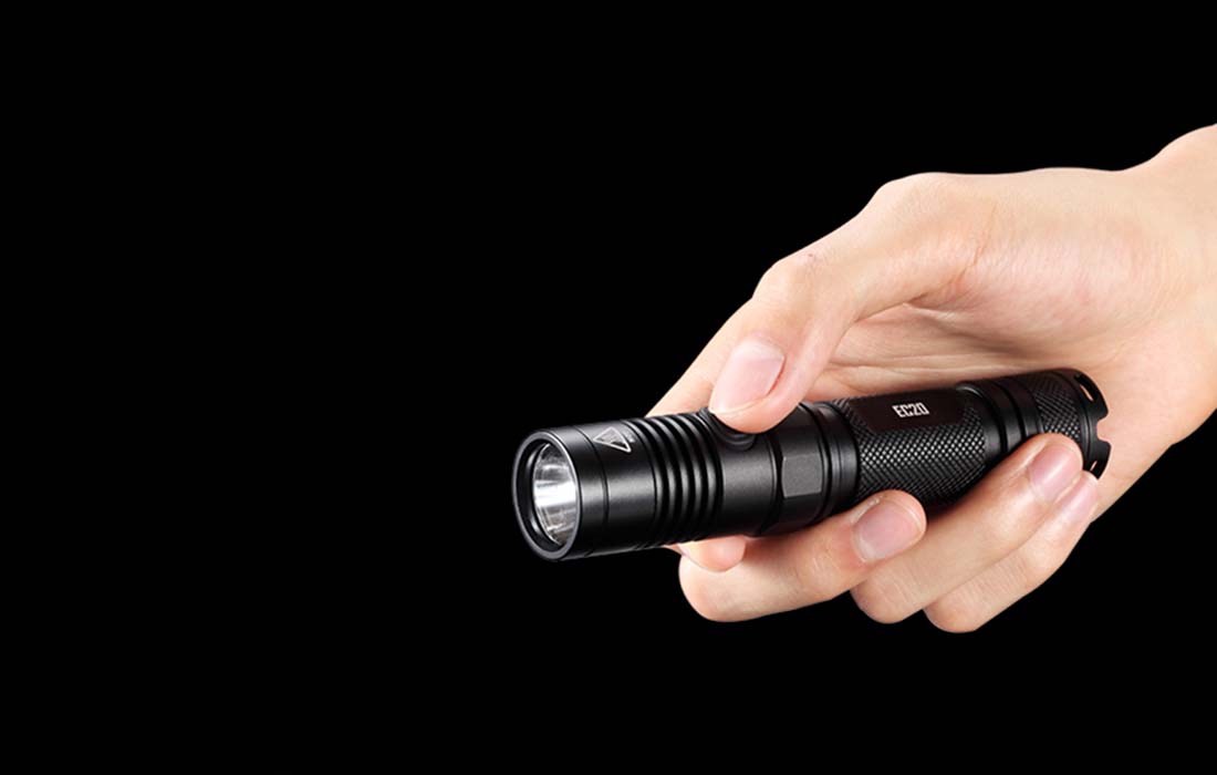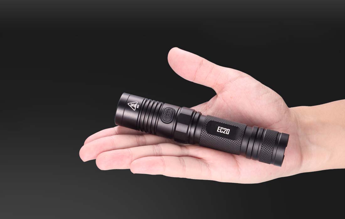 The EC20 flashlight is perfect for everyday use. It can accompany you almost anywhere. It weighs only 76g and is extremely handy. The engraved surface makes the device fits perfectly in your hand and does not slip out. You can also stand it steadily on a flat, even surface. Easy operation of the flashlight is provided by a convenient to use button.