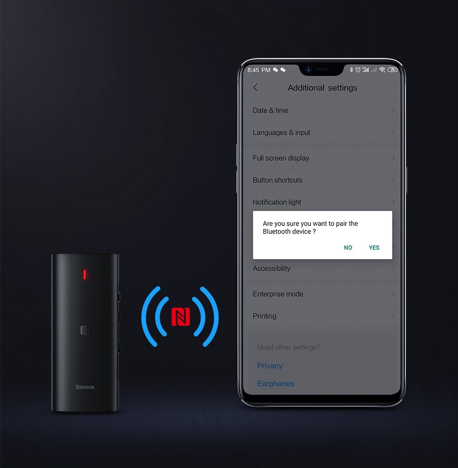 Whether you're playing an exciting game or listening to music, a Baseus audio receiver will provide you with high-quality sounds in any situation. It does not cause any noise or interference. In addition, a built-in microphone with noise reduction function allows you to make phone calls..