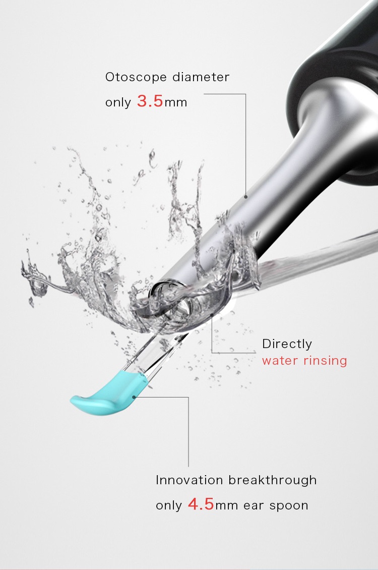 Wireless, intelligent laryngological tool with the possibility of viewing on screen. It will allow you to thoroughly and extremely safely clean the center of your ear, helping you see where the dirt is. It is also suitable for other places that are susceptible to dirt or infections. Try to relax during gentle, quiet use. High level of safety is provided by a tip made of special medical material. At the same time, thanks to the adjustment system, it will fit easily to any ear shape. It was designed to adapt to the sensitive parts of our face. High quality workmanship with the intention to provide the best possible experience. Moreover, you can easily wash the otoscope under running water.