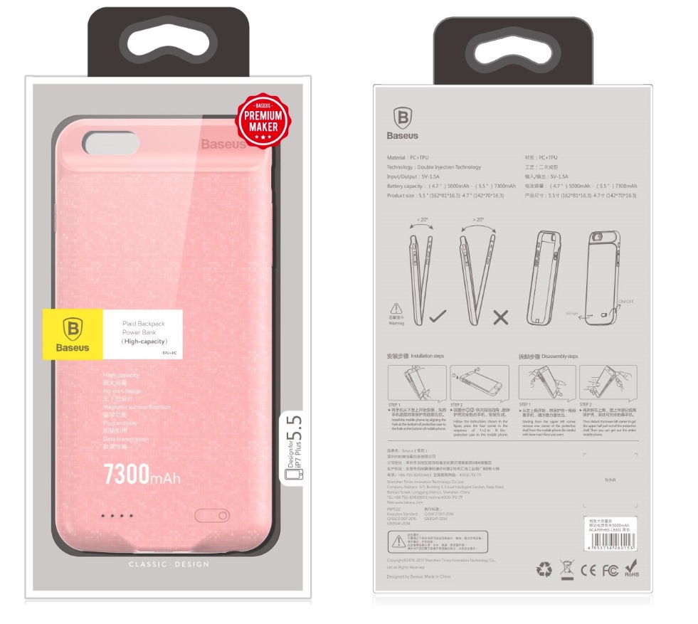 Baseus as one of the most innovative manufacturers of GSM accessories and this time it presented a product that will certainly enjoy great interest. New case designed for Apple iPhone 7 and 8 PLUS has been equipped with built-in PowerBank with a capacity of 7300mAh. This combination together with elegant design will allow you to use the phone much longer without having to look for an outlet or have an additional power source. The outer layer of Powerbank has been covered with an elegant mosaic providing a safe grip