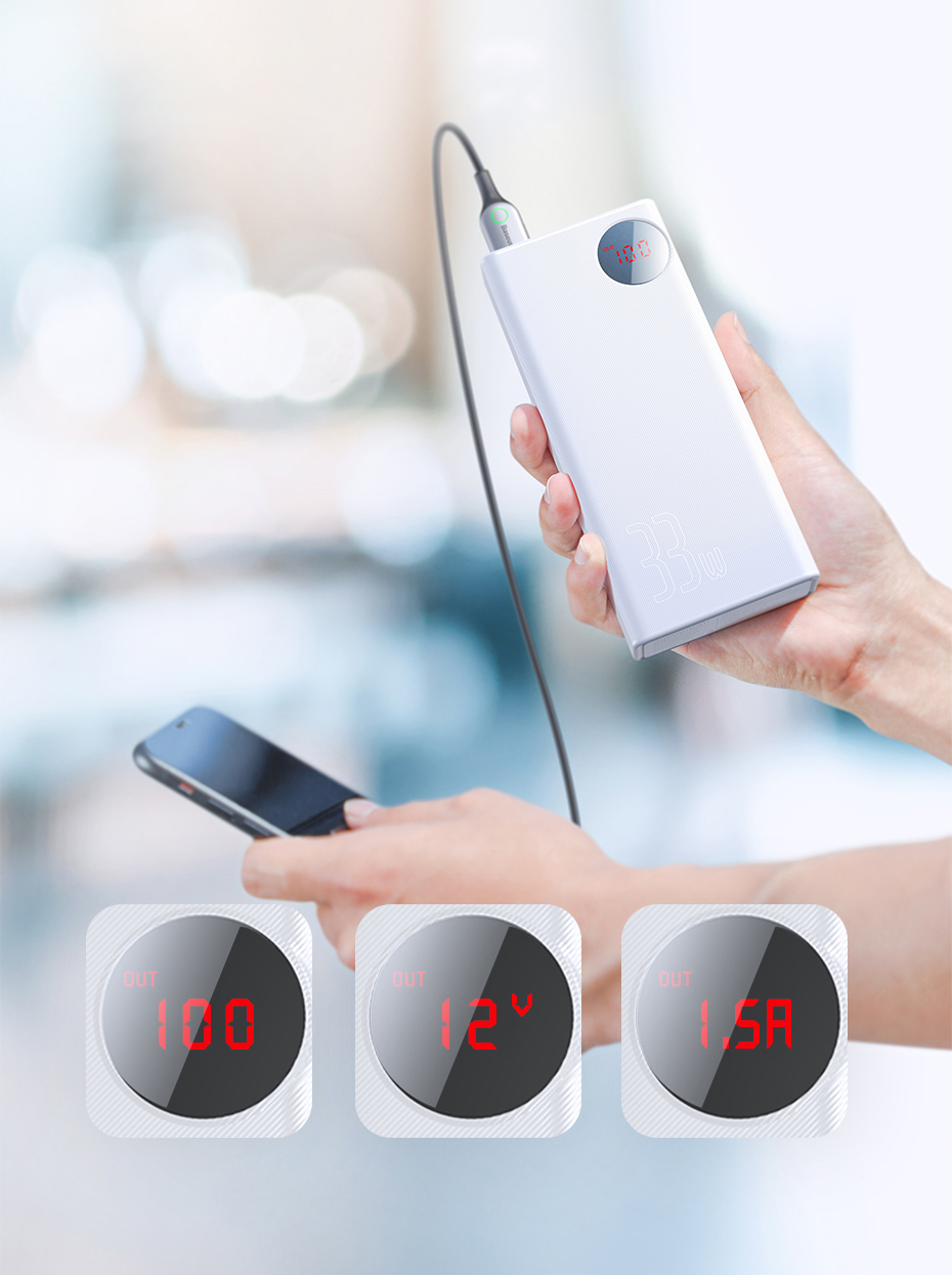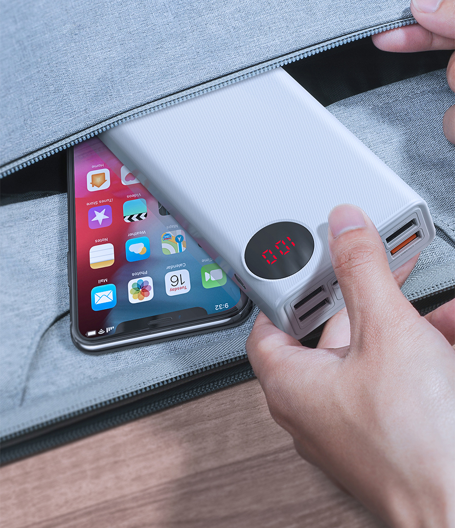 Baseus power bank is very compact, allowing you to take it anywhere with you. It can even fit in a small bag or backpack.